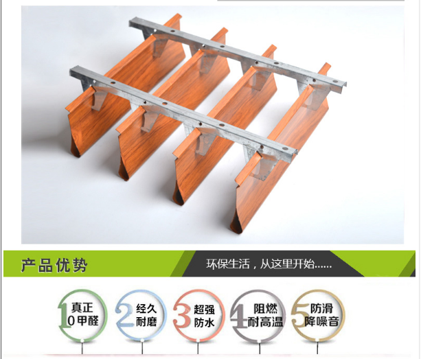 滴水型材掛片(葉片)天花層次分明,美觀大方,線條簡(jiǎn)法,經(jīng)久耐用,通風(fēng)效果好,裝拆靈活,可根據(jù)用戶要求調(diào)整視覺高度,有利于空間的燈光效果以及消防噴淋,空調(diào)系列等設(shè)施的安裝。