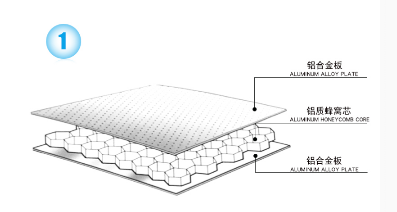 1.蜂窩鋁板分量輕,剛性好,強度高,厚3.0毫米,每平方重8公斤,抗拉強度100 ~ 280牛頓/米。