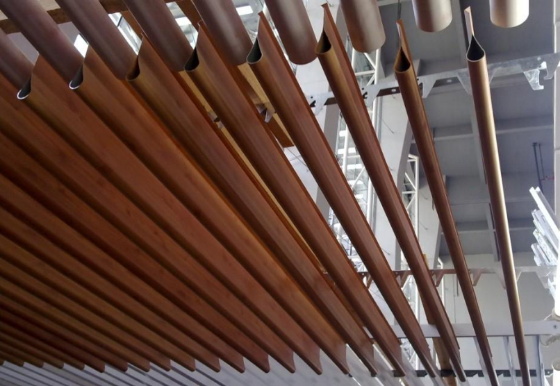 滴水型材掛片(葉片)天花層次分明,美觀大方,線條簡法,經久耐用,通風效果好,裝拆靈活,可根據(jù)用戶要求調整視覺高度,有利于空間的燈光效果以及消防噴淋,空調系列等設施的安裝。