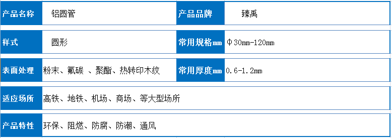 木紋鋁圓管參數(shù)